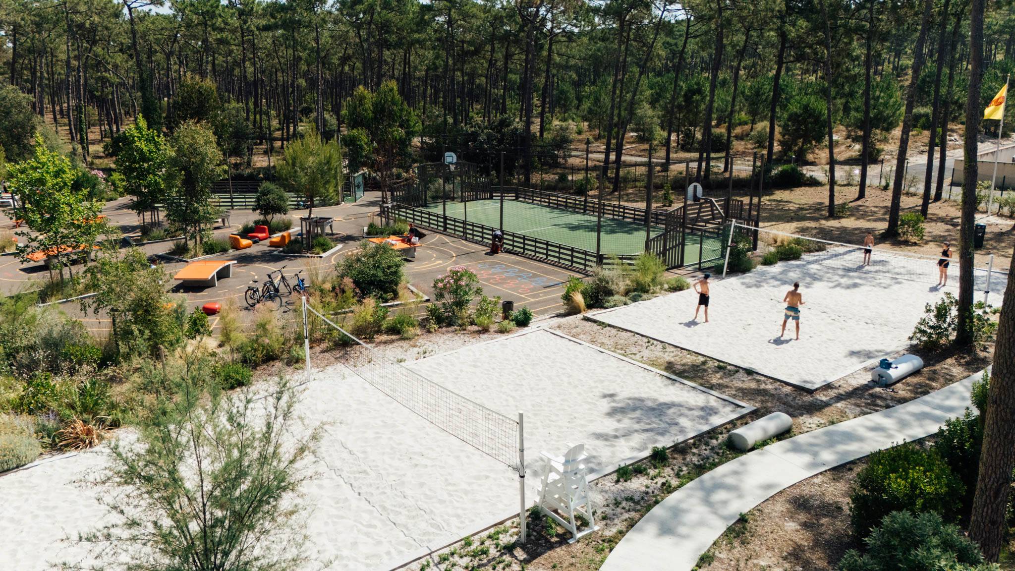 Ontdek ons volledig uitgeruste sportterrein van 6000 m². Ter plaatse kunt u gebruikmaken van een beachvolleybalveld, een beachtennisbaan, twee multisportvelden, vier jeu-de-boulesbanen, een pumptrack, een skatepark, pingpongtafels, teqballtafels, tafelvoetbal, fitnessapparatuur en een groot fitnessterras waar het hele seizoen door sportactiviteiten worden georganiseerd.